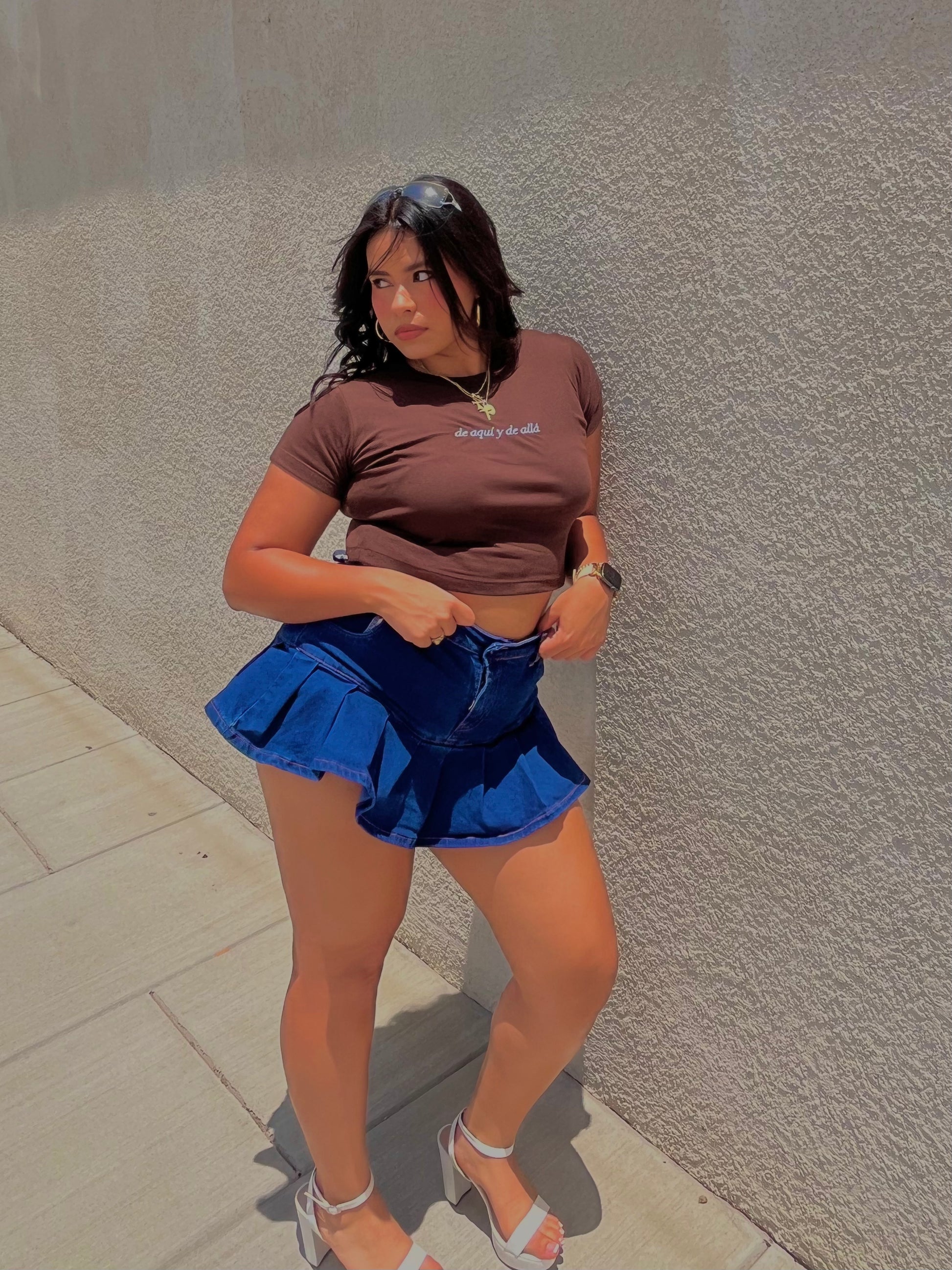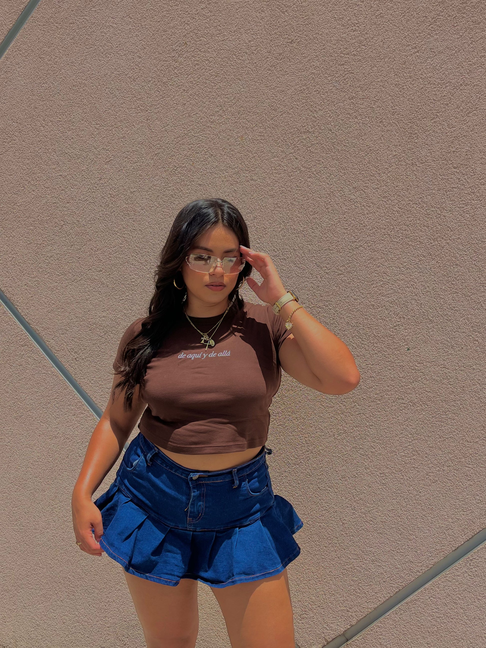 'De Aquí y De Allá' Embroidered Brown Rib Baby Tee
