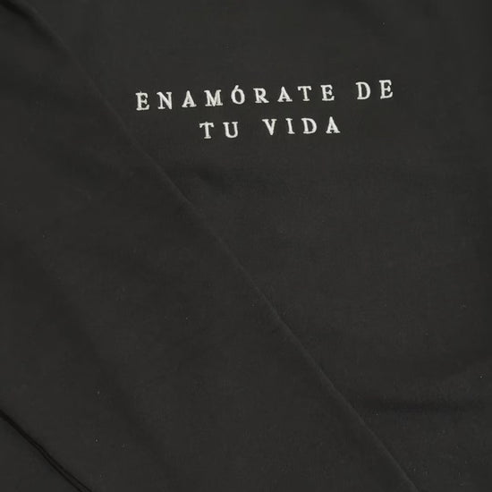 'Enamórate De Tu Vida' Embroidered Black Crewneck