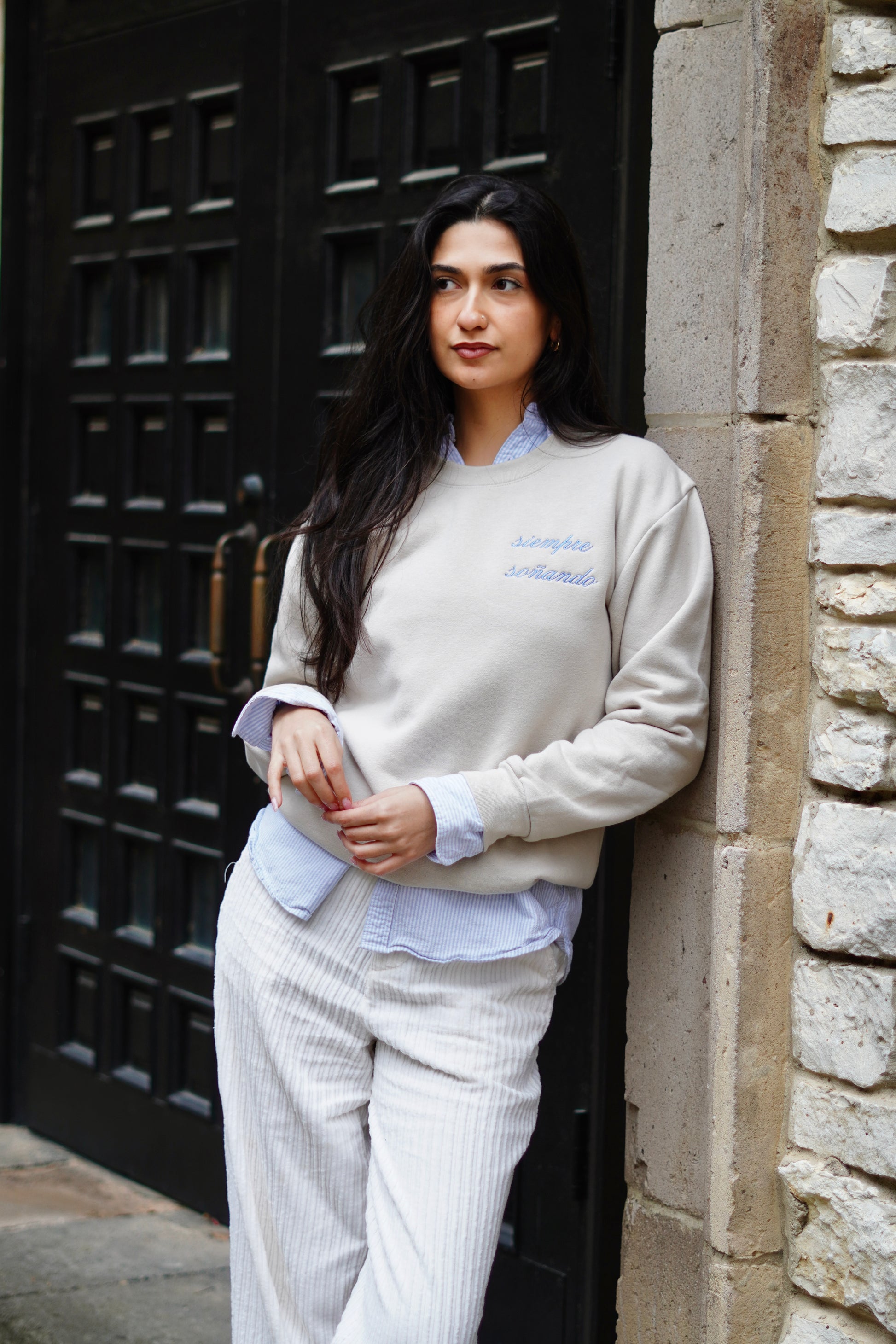 'Siempre Soñando' Embroidered Light Cream Crewneck
